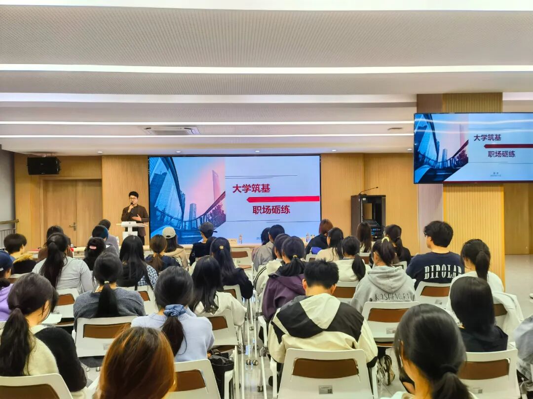 分享中,詹波围绕“布局当下”“预见未来” 两大核心维度,为学弟学妹们送上成长箴言。谈及校园时光,他强调 “学业为本、实践赋能、锚定目标” 的重要性:专业课程与技能学习是核心竞争力的基石,各类等级证书与专业证书能为就业加分,而学生会工作、社团活动与实习经历则是打造差异化优势的关键,学生干部身份与实习实践中的积累,都可能成为未来职场的 “加分项”。同时,他建议同学们提前规划职业方向,聚焦自身短板持续提升,避免毕业迷茫。